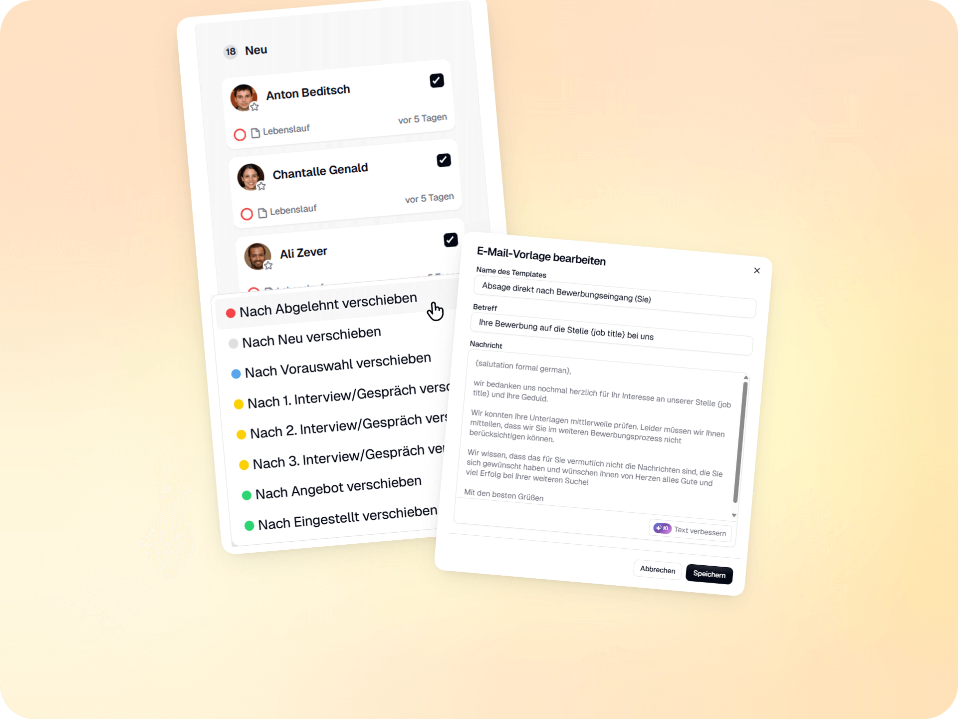Eine gute Candidate Experience bedeutet, Bewerber nicht warten zu lassen. Wenn die automatisierte Vorauswahl abgeschlossen ist, ermöglicht Ihnen unser System einen reibungslosen Übergang zur Kommunikation:
