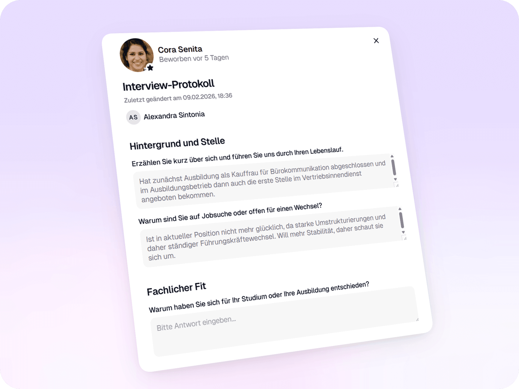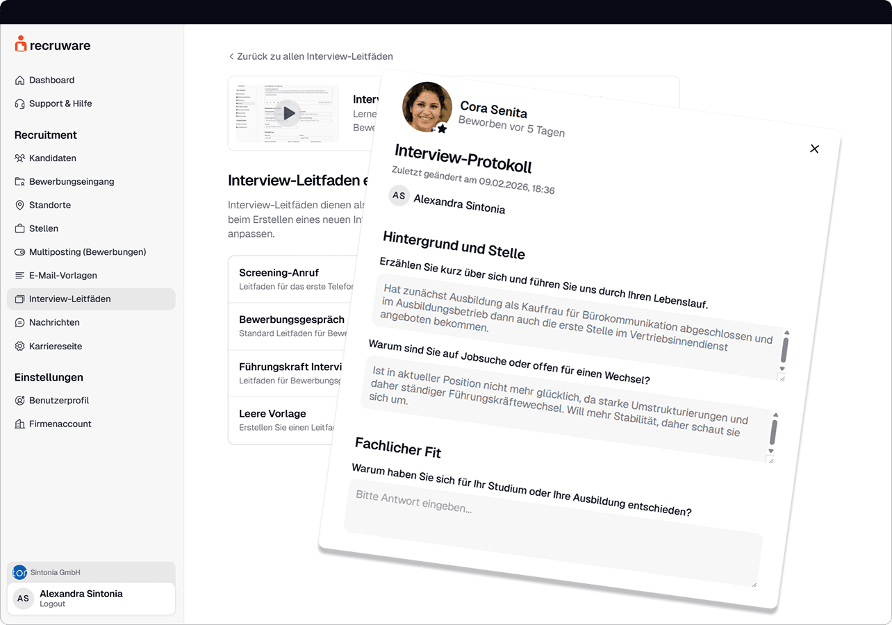 Individuelle Interview-Leitfäden: Hinterlegen Sie für jede Position spezifische Fragenkataloge und kompetenzbasierte Fragen.